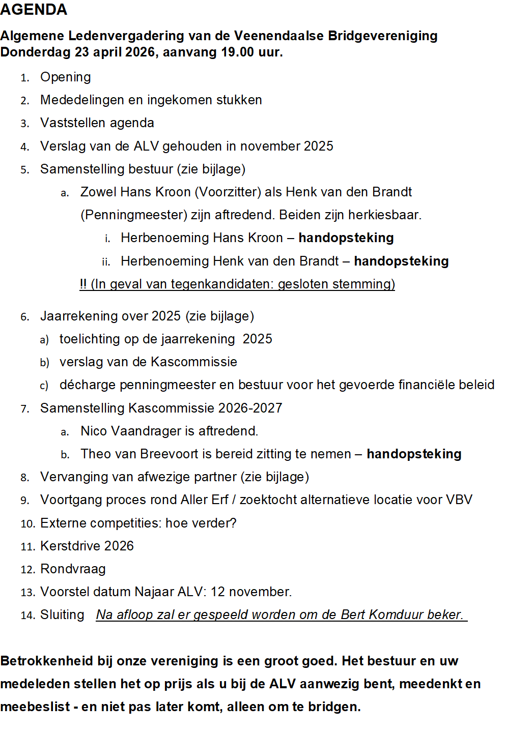 Agenda ALV 23 januari